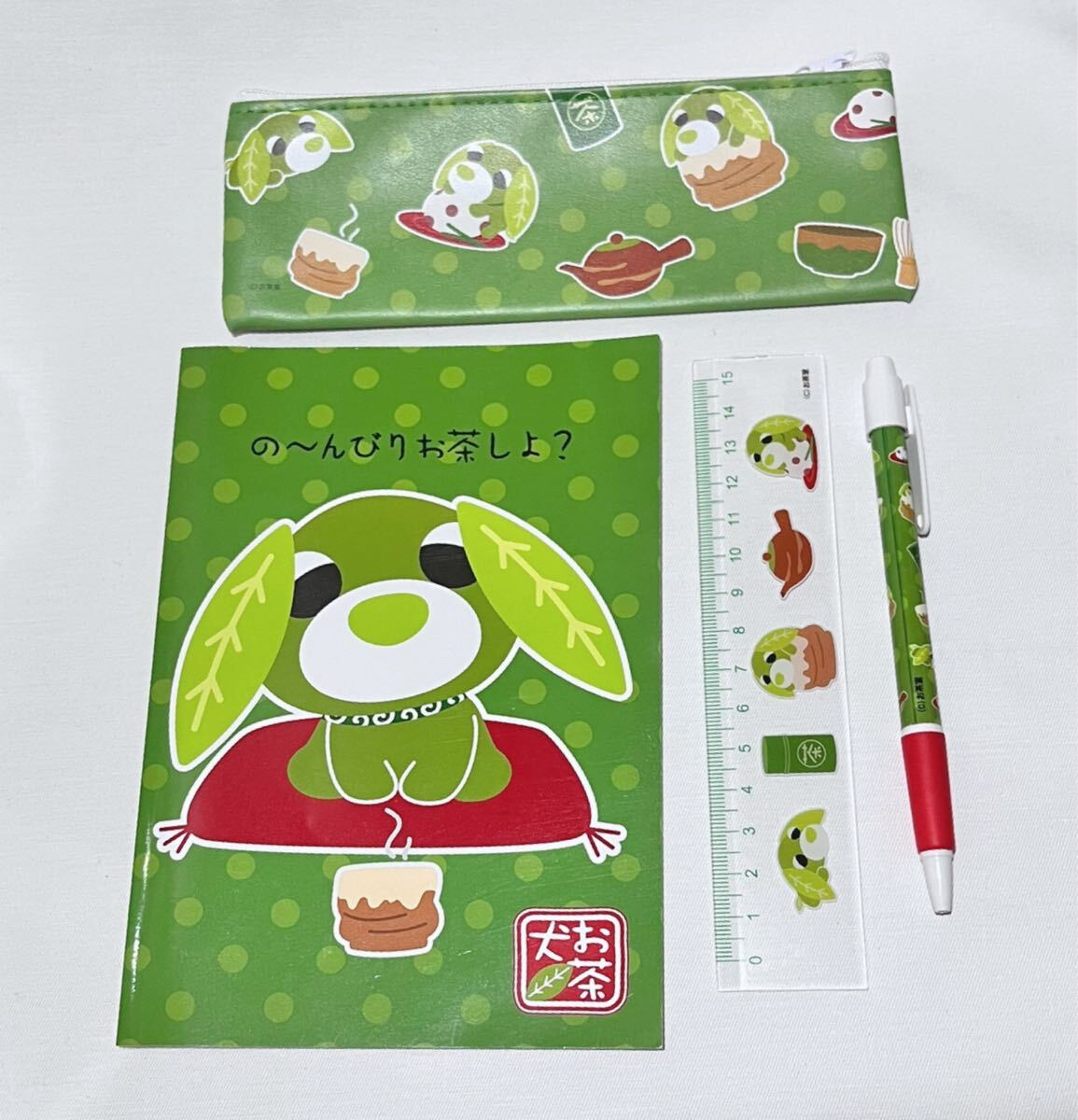 - 【お茶犬】ステーショナリーセット【ノート・ペンケース・定規・ボールペン】平成レトロ 当時物