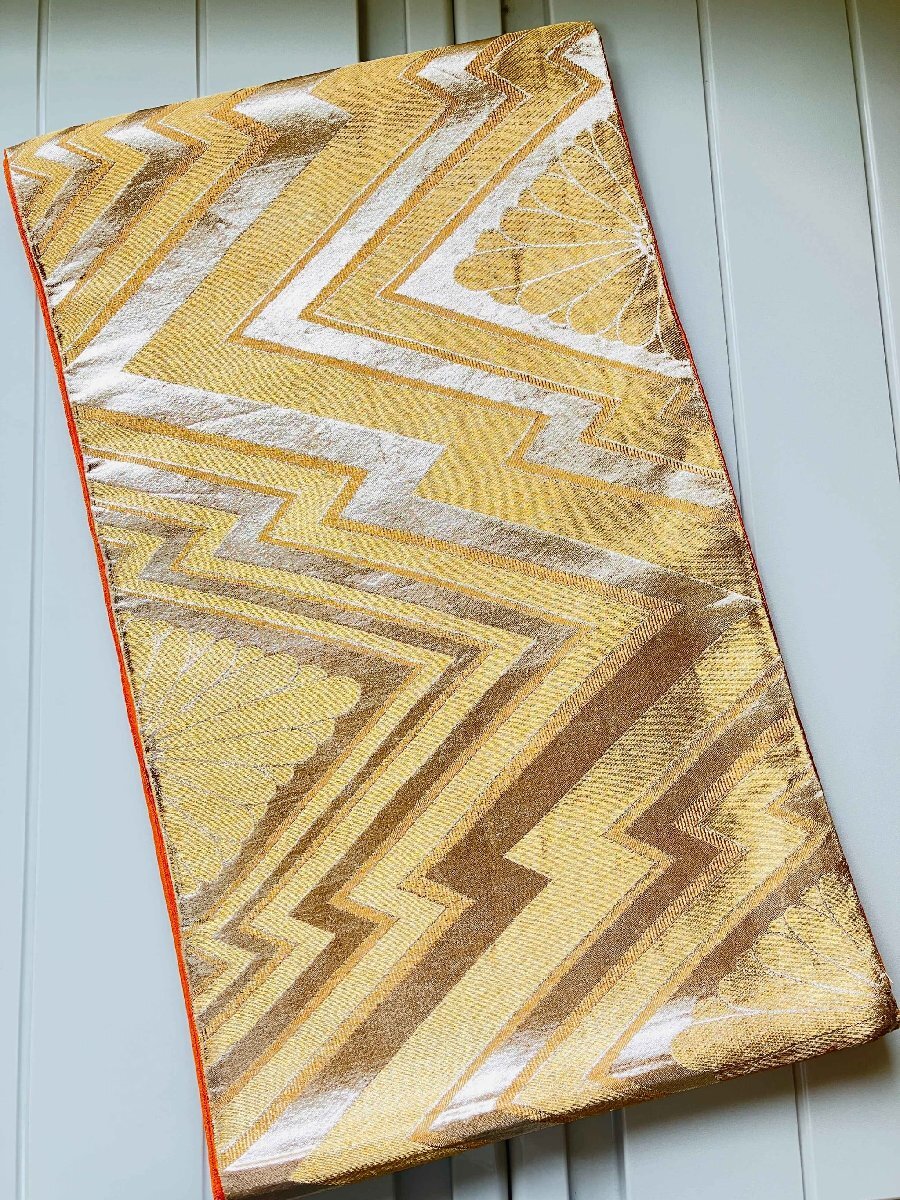 > 袋帯 正絹 / 金色系 ゴールド系 / 菊 幅約31cm 着物帯 TCS着物 W56