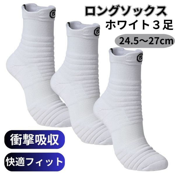 > スポーツソックス 3足セット メンズ 靴下 レディース 吸汗速乾 抗菌防臭 滑り止め 厚手 ランニング トレーニング ゴルフ ホワイト 新品