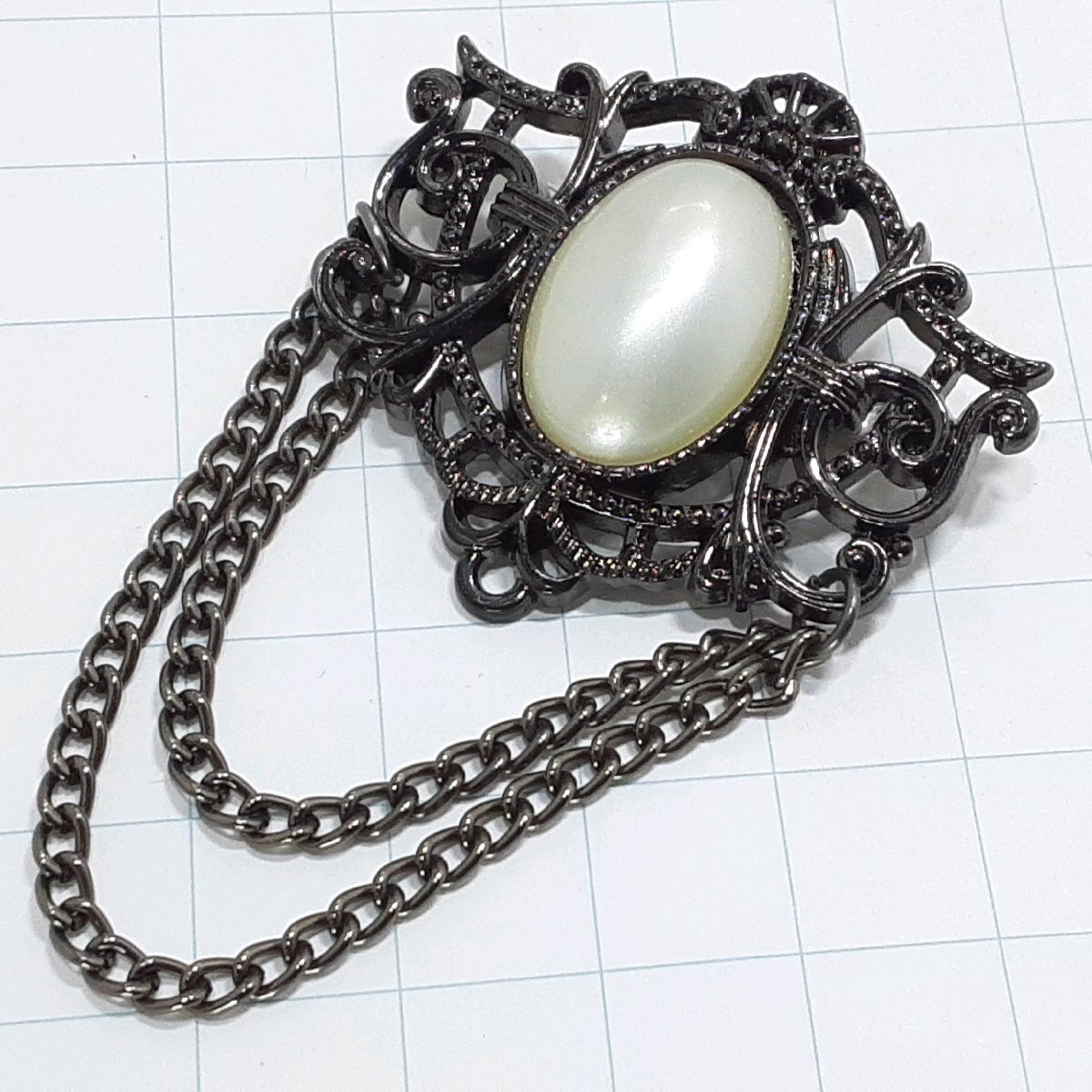 - 送料無料)ビンテージ☆パール チェーンエンブレム☆アンティーク ブローチ A31607