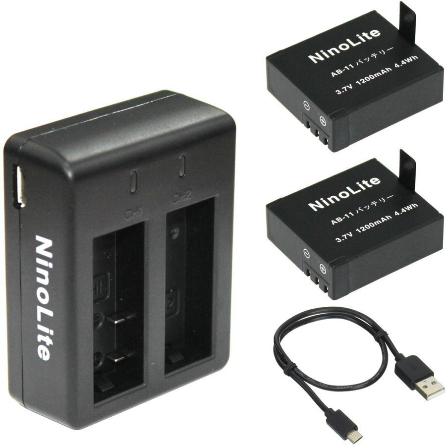 AB11_t アクションカメラ バッテリー2個セット と USB充電器 3点セット BEOWNWEAR F60A DVEE TECH LEVIN W9C 等 対応 NinoLite AB-11