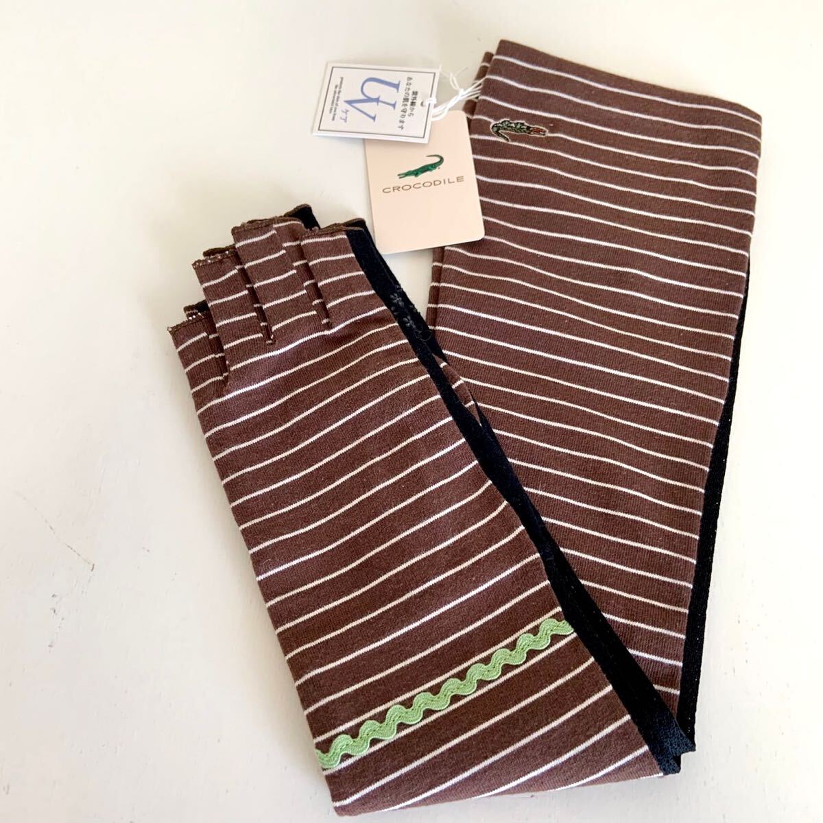 - 未使用 CROCODILE クロコダイル UVケア グローブ 指なし 指開き 手袋 綿100% レディース アームカバー UVカット 夏 紫外線対策 ボーダー柄