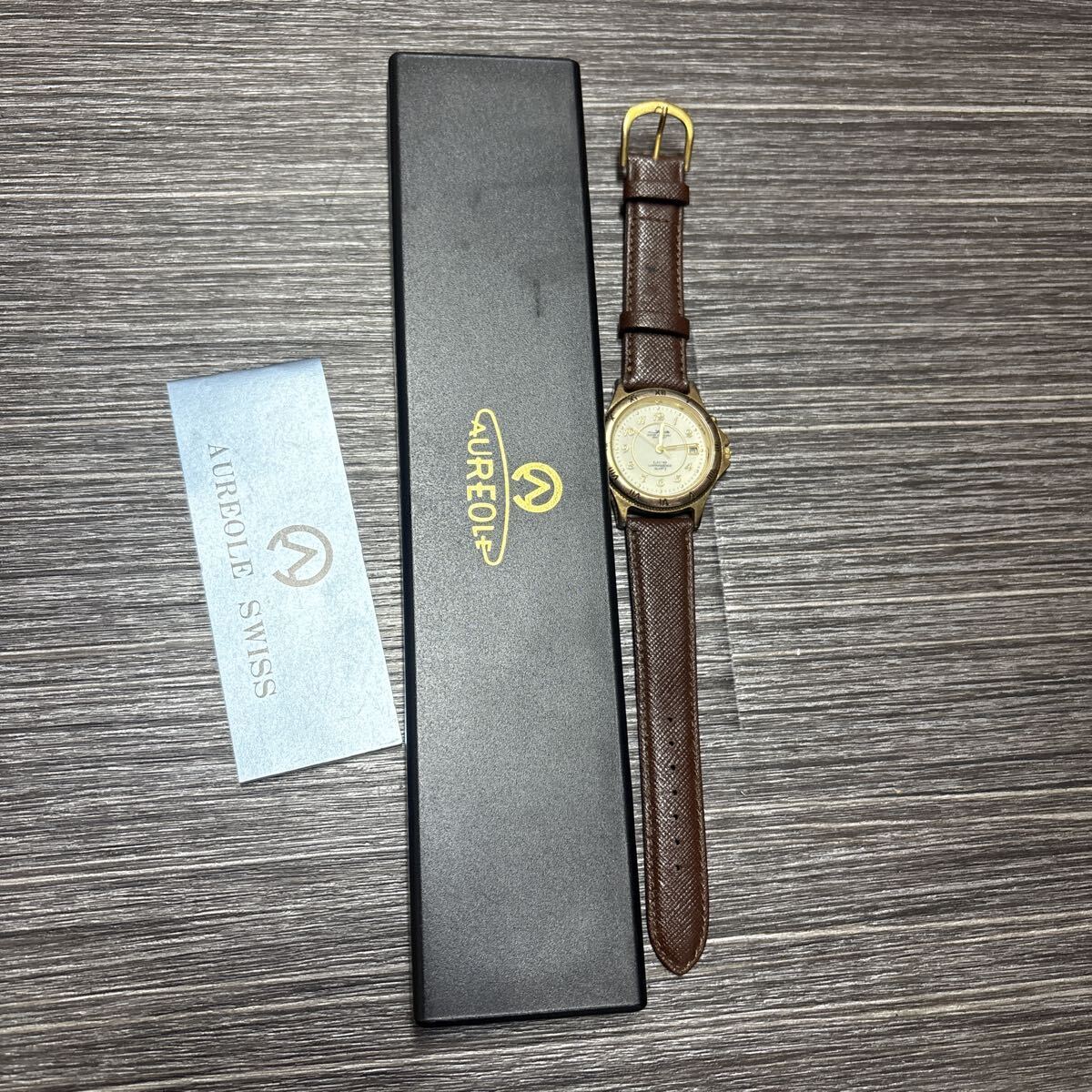 - ケース付き●AUREOL SWISS オレオール/レディース アナログ クォーツ/3針/時計/アンティーク/ブラウン/茶色/ローマ数字/腕時計 ★3749-2