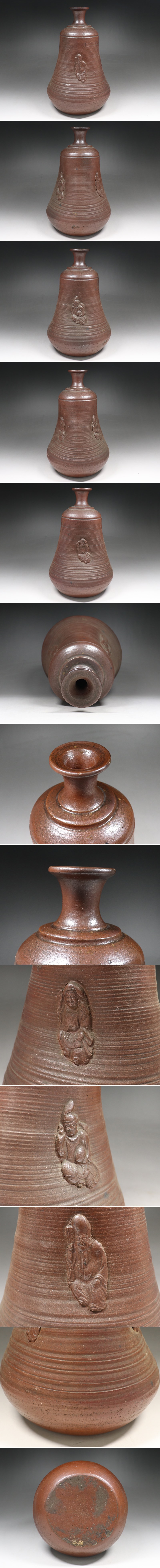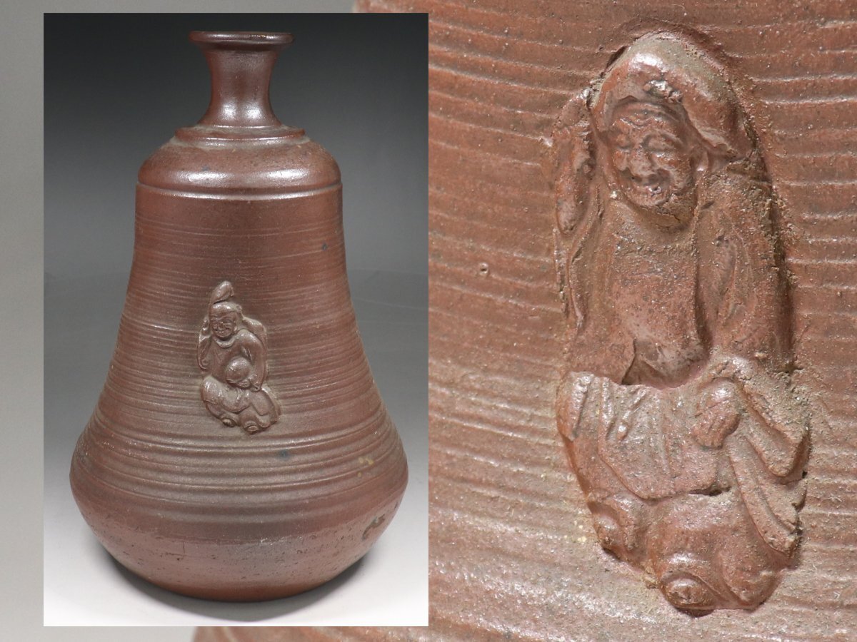 > ◆古備前・人形徳利・大徳利・高さ 約26㌢・布袋尊・大黒天・寿老人・臍徳利・花瓶・酒器・花器・床置・縁起物◆a8171h