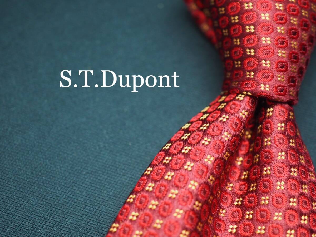 - 美品【S.T.Dupont デュポン】 F1610 赤系 SILK ブランド ネクタイ 古着 良品