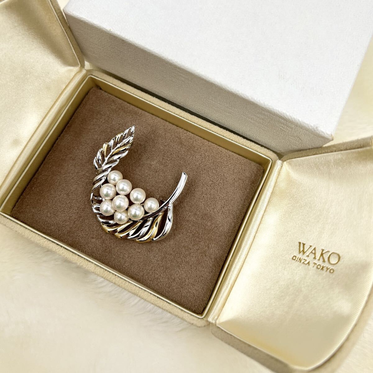 - ◇ WAKO 和光 東京銀座 K18 × SILVER刻印 パール ブローチ リーフデザイン 真珠 ヴィンテージ 付属品あり ◇ 【C2430】