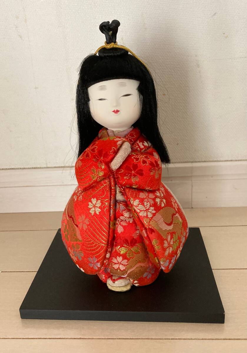 - 赤い着物 日本人形 台座付き 高さ約19.5㎝