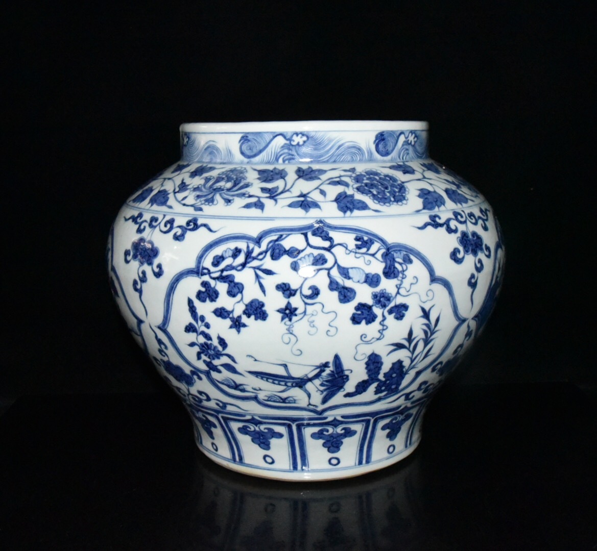 - 【超珍館蔵】元 古陶瓷品 青花 開窗 昆蟲瓜果紋罐 陶藝 古賞物 古董品 古美術品 時代物 旧家蔵出 稀少珍蔵品