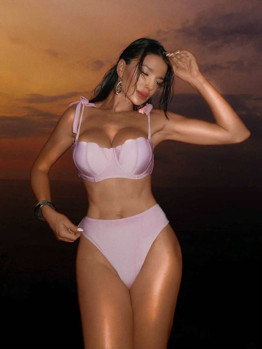 - レディース 水着 ビキニセット 新作 ウィメンズピンクのアップリフト装飾ビキニセット、夏のビーチバケーション用