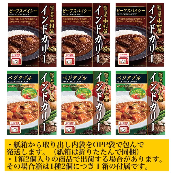 - ■新宿中村屋 インドカリー(ビーフスパイシー・ベジタブル) 2種6箱■