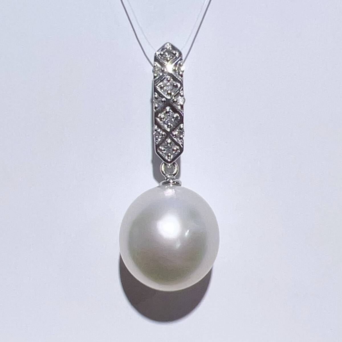 - Pt900 天然 白蝶 南洋 パール ダイヤ ネックレス ペンダントトップ 13.8mm D0.12ct 4.8g 本真珠 レディース アクセサリー 未使用品