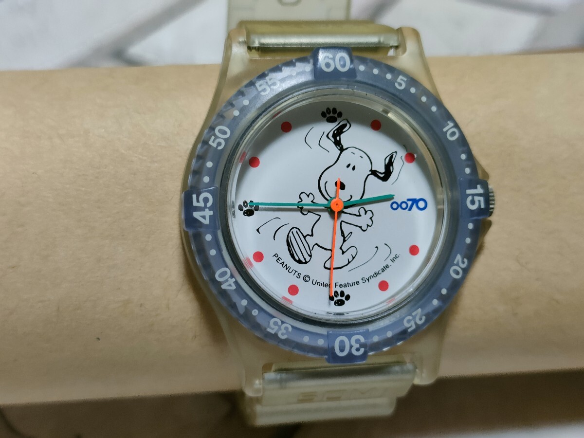 - バブル〜平成レトロビンテージ!非売品 CITIZEN Q&Q×日本高速通信 0070 PEANUTS スヌーピーコラボ スケルトン腕時計 動作品