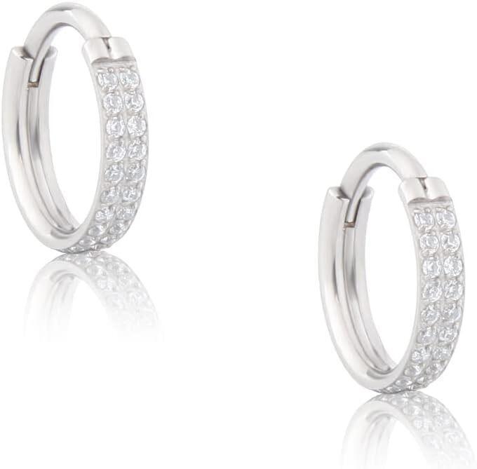 - チタン フープピアス 2列のジルコニア レディース イヤリング シルバー12mm