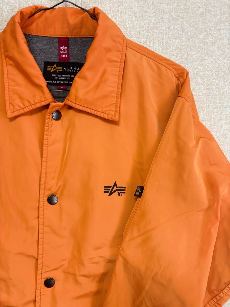 - ALPHA INDUSTRIES アルファインダストリー オレンジ色 コーチジャケット ナイロンジャケット メンズMサイズ サイドポケット