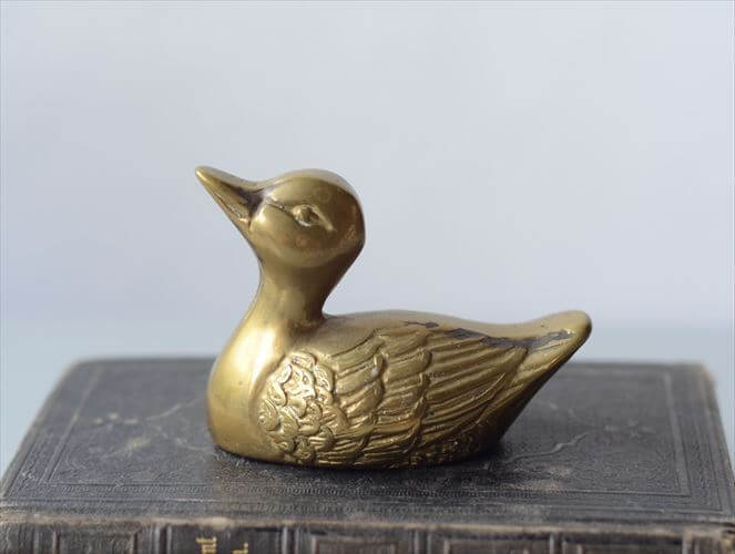 > フランスのブロカントから 真鍮のカモ オブジェ ブラス フィギュア インテリア 店舗什器 ヴィンテージ アンティーク_ig4604