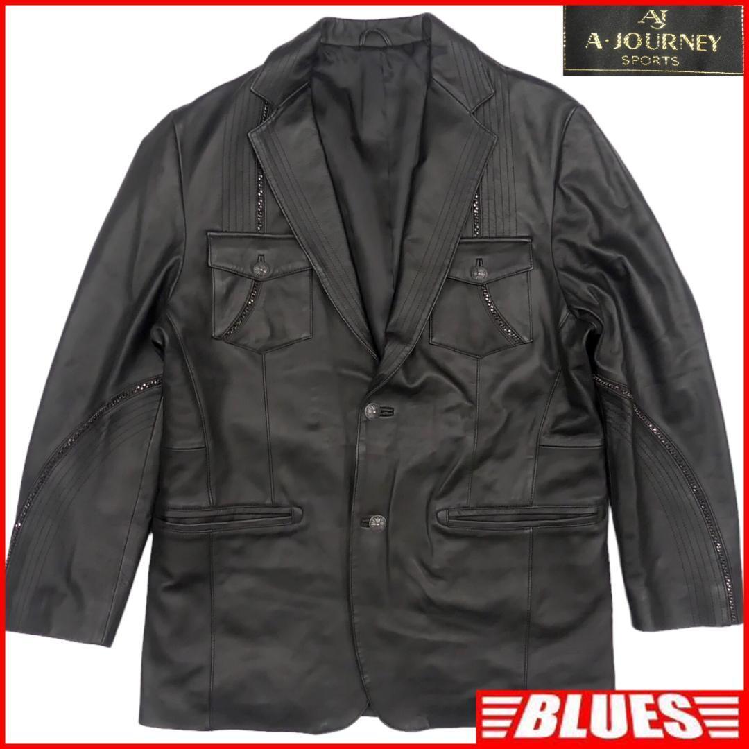 - 即決★A JOURNEY★メンズL レザーテーラードジャケット アジャーニー 黒 本革 ブレザー 本皮 スーツ 革ジャン 背広