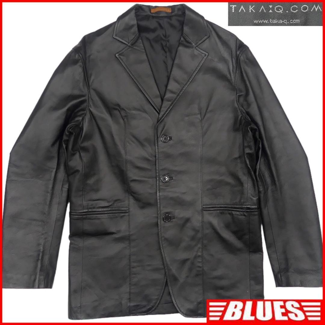 - 即決★Taka-Q★メンズM レザーテーラードジャケット タカキュー 黒 本革 ブレザー 本皮 スーツ 革ジャン 背広