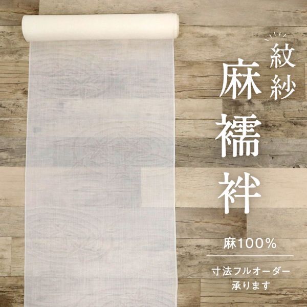 > 【反物 長襦袢】 夏の麻 紋紗 長襦袢 波紋に紅葉地模様 白 着物下 お仕立て可 反25-77