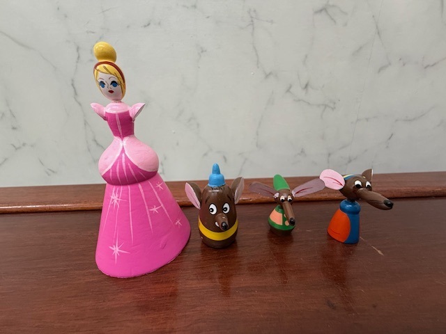 - Disney ディズニー シンデレラ・ネズミ・ジャック・ガス 木製 こけし 首振り人形