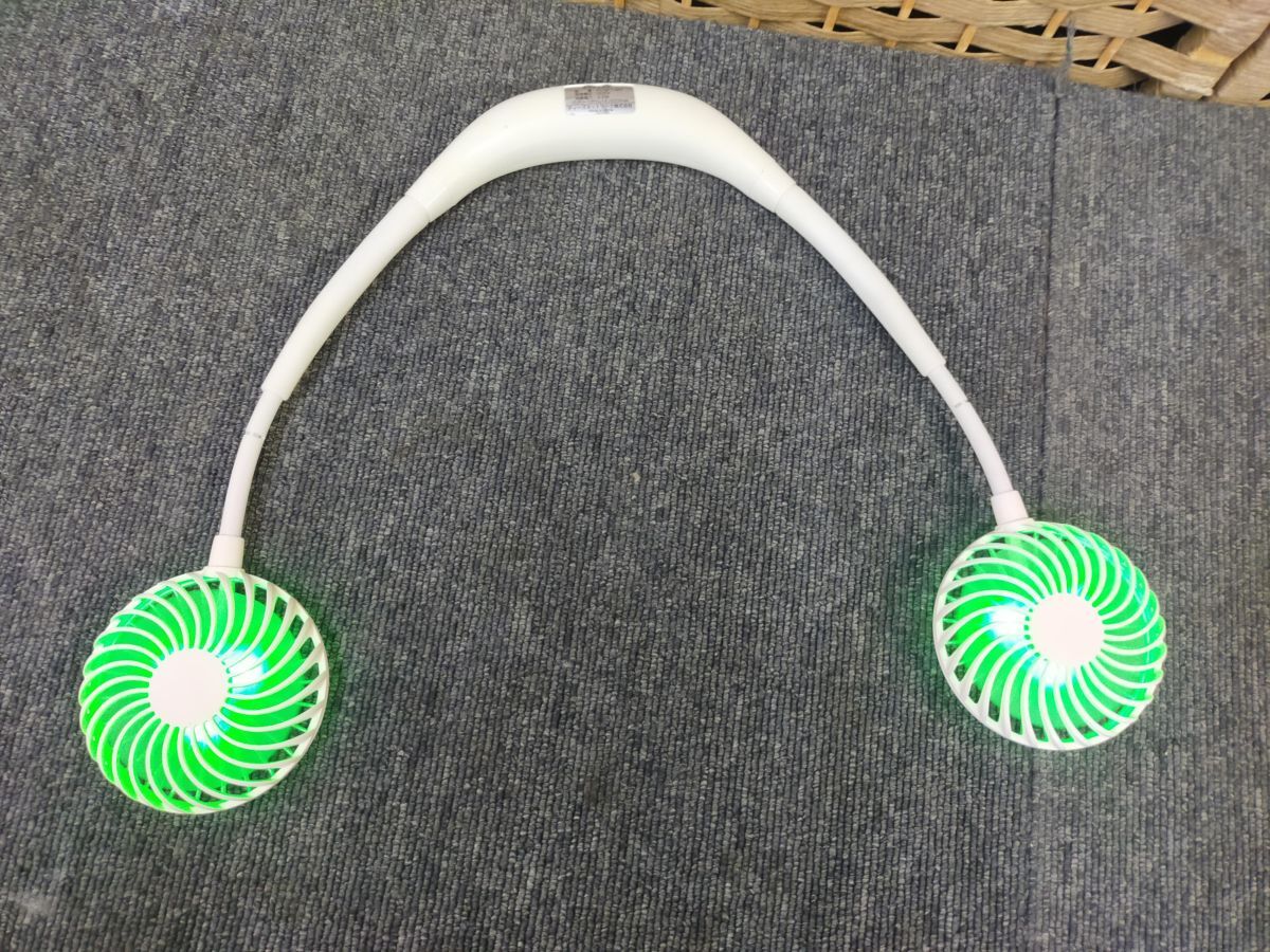 - E12-20250826-55 首掛け扇風機 ネックファン LEDライト付き FK-NF1-WH 充電式 携帯用