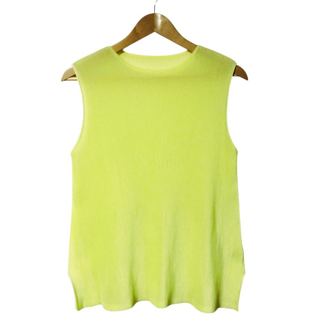 - PLEATS PLEASE プリーツプリーズ プリーツ カットソー ブラウス ノースリーブ スリット 3 イエロー 日本製 イッセイミヤケ レディース M12