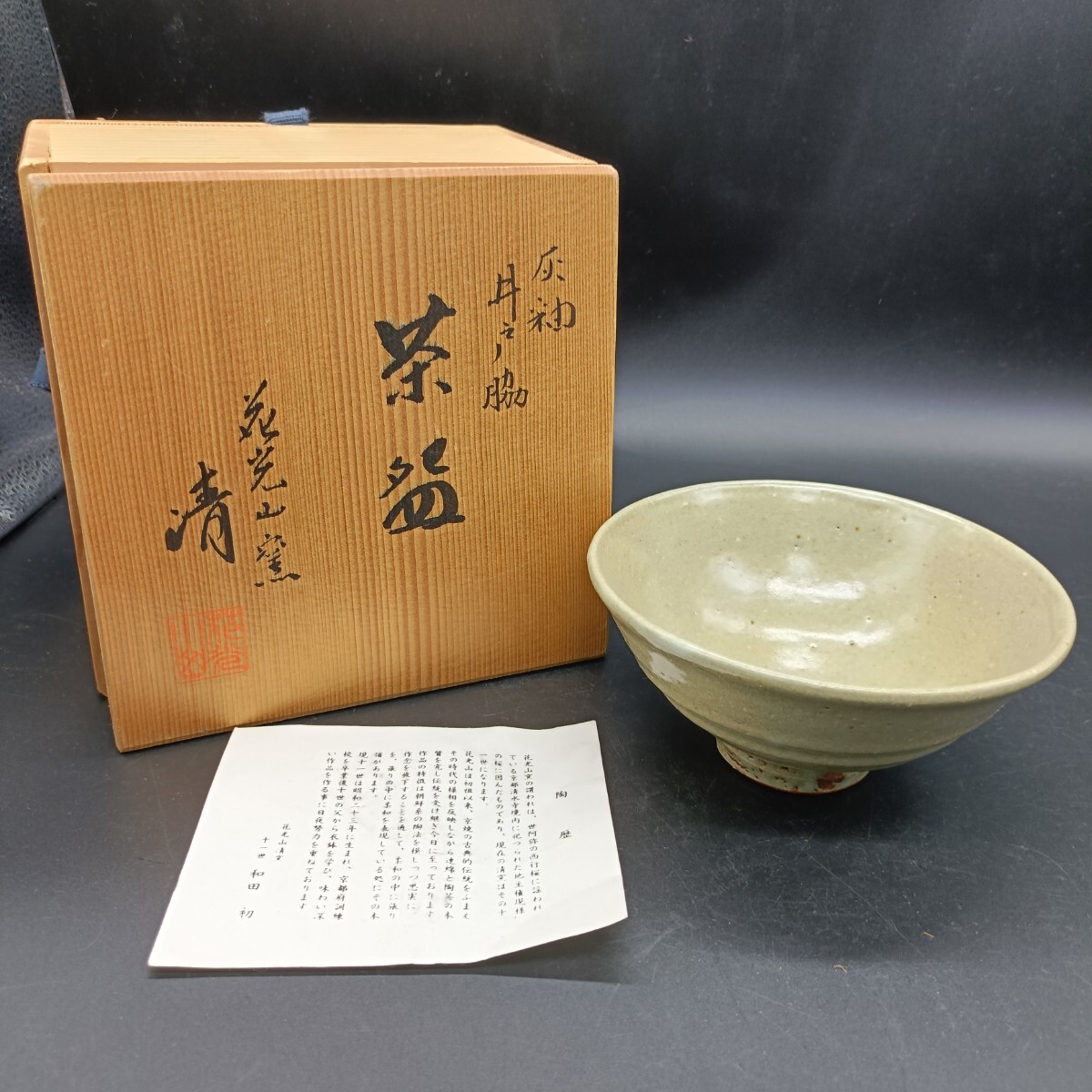 - 灰釉 井戸脇 花光山 清窯 和田初 茶碗 抹茶碗 茶器 茶道具 陶器 ウ11