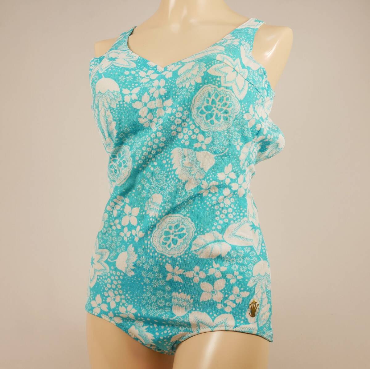 - 7837 トリンプ レトロ花柄プリント ワンピース水着 Mくらい ブルー 匿名配送