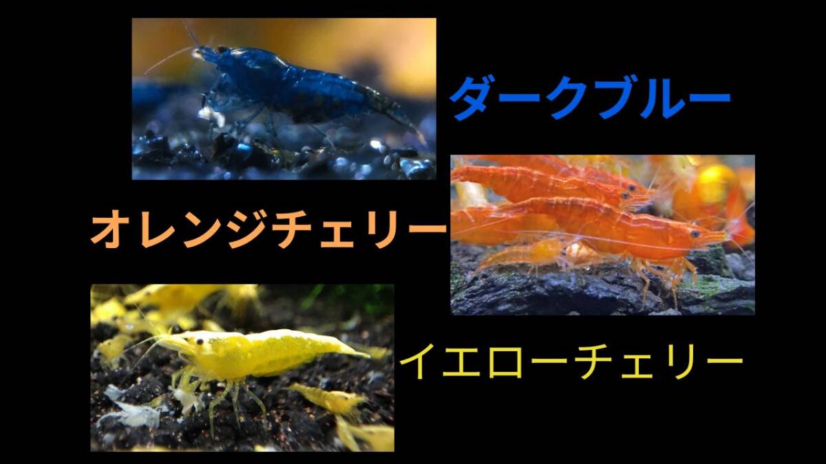 > 【ダークブルーシュリンプ5匹+オレンジチェリーシュリンプ5匹+イエローチェリーシュリンプ5匹+補償各1匹】