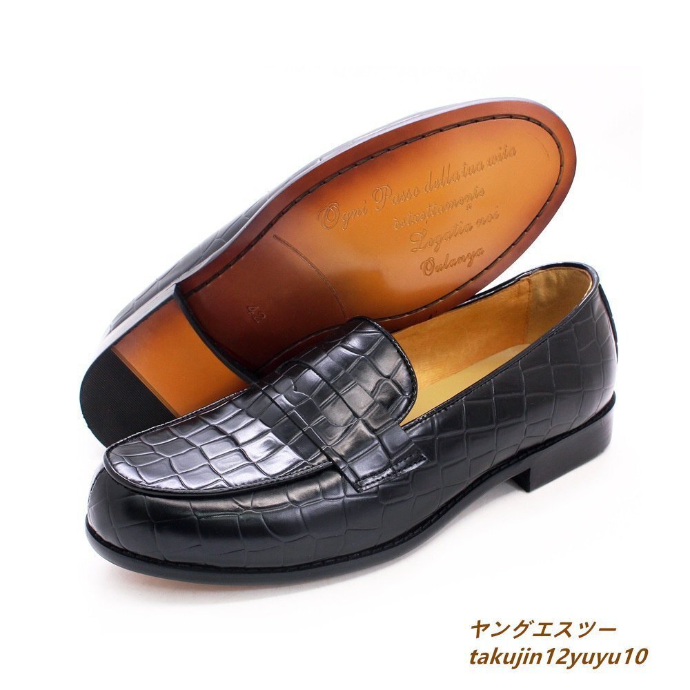 - 定価8万★最高級 ローファー スリッポン 本革 ビジネスシューズ 鰐柄 職人手作り 本革 紳士靴 レザーシューズ 牛革 革靴 ブラック 28.0cm