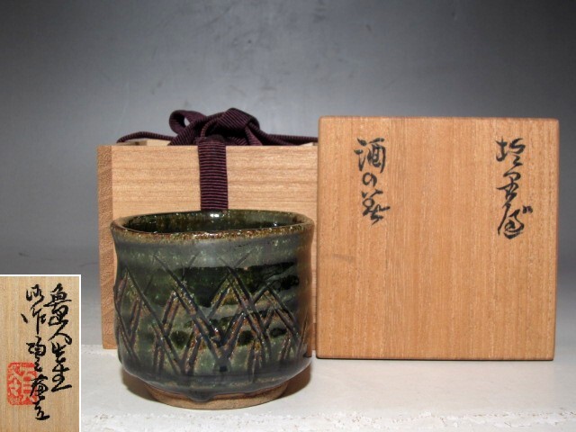 - 北大路魯山人 織部盃 黒田陶々庵極めの名品☆z673