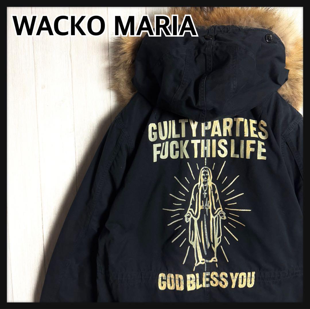 - 【超希少モデル・美品】WACKO MARIA ワコマリア ラクーンファー&ライナー付 バックロゴ N3-B モッズコート ブラック 黒 S 実寸大きめ