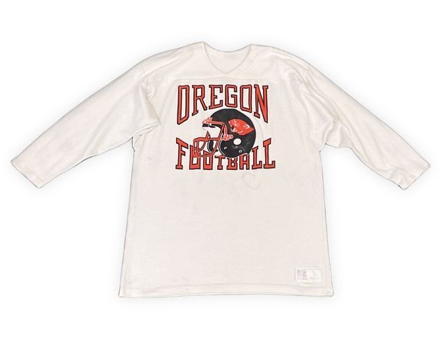 > 80's 90's 米国製 ラッセル RUSSELL ビンテージ カレッジ Tシャツ フットボール OREGON FOOTBALL 白 L [la-1393]
