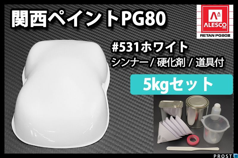 - 関西ペイント PG80 ♯531 ホワイト 5kg セット (シンナー 硬化剤 道具付) 2液 ウレタン 塗料 Z26