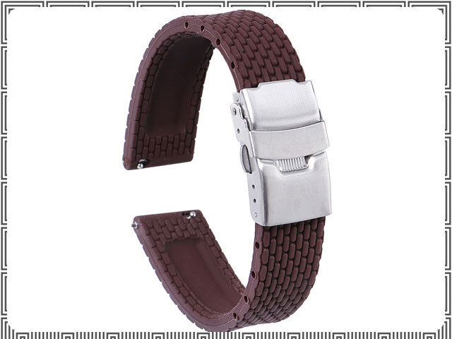 - 新品 時計ベルト 時計バンド 18mm シリコン ブラウン バネ棒付 メッシュパターン 交換ベルト [2079:madi]