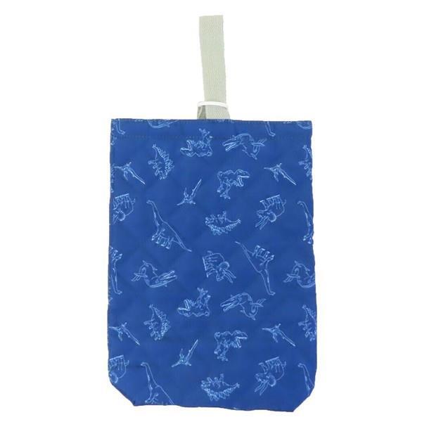 - シューズバッグ ディノワールド キルトシューズケース ネイビー 上履き入れ 運動靴入れ