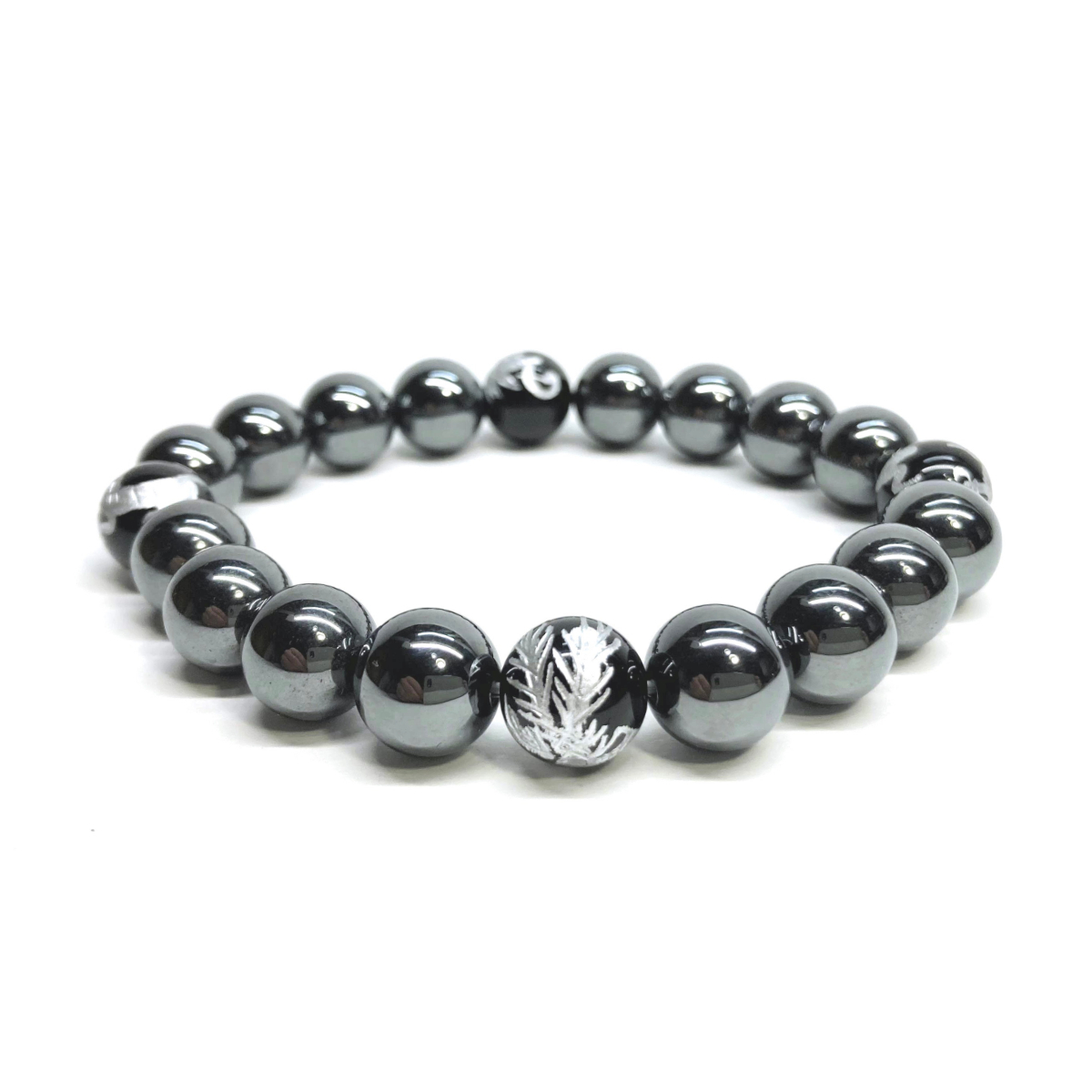 - 10mm 四神獣銀彫オニキス×ヘマタイト パワーストーン ブレスレット天然石 運気上昇 開運 金運 恋愛運 お守り 青龍 白虎 玄武 朱雀