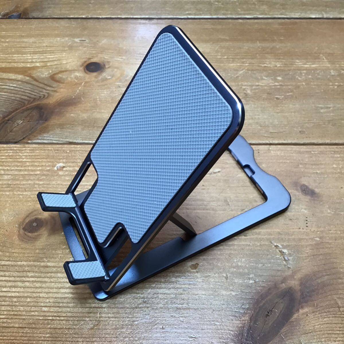 - スマホスタンド 折りたたみ コンパクト 厚さ6ミリ アルミ製 ディープグレー