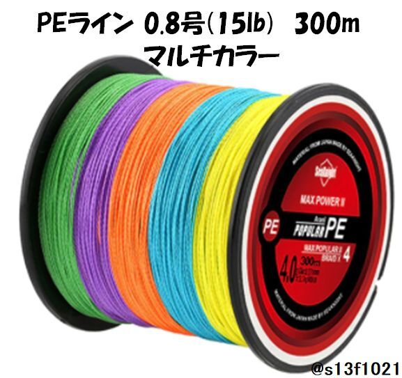 - 【送料無料】4本編みPEライン 0.8号(15lb) 300m マルチカラー