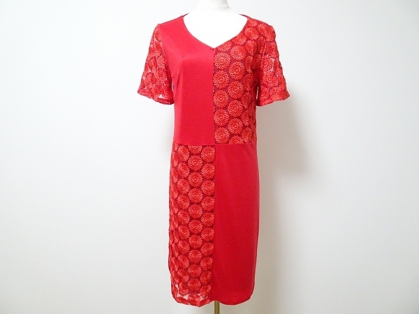 - #snc ヴィヴィアンタム VIVIENNETAM ワンピース 0 赤 半袖 メッシュ 花柄 刺繍 レディース [623744]