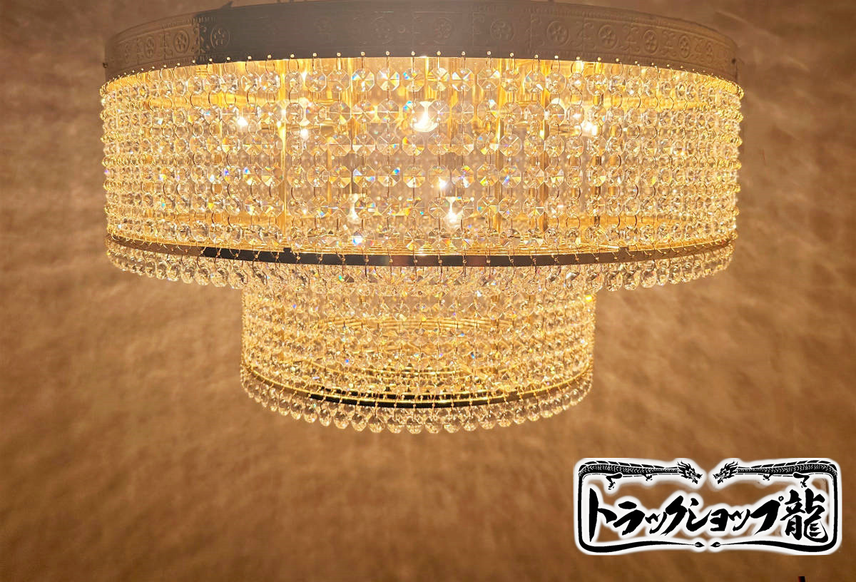 - 直径60cm天吊りシャンデリア ケーキ型2段タイプ フルゴールドメッキ クリスタルビーズ レトロ観光バス デコトラ車内照明トラック部品C0607S