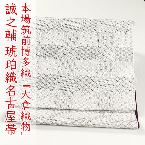 > 和遊館 即決ona4495 本場筑前博多織 大倉織物 誠之輔 琥珀織 八寸 名古屋帯 お仕立て付き