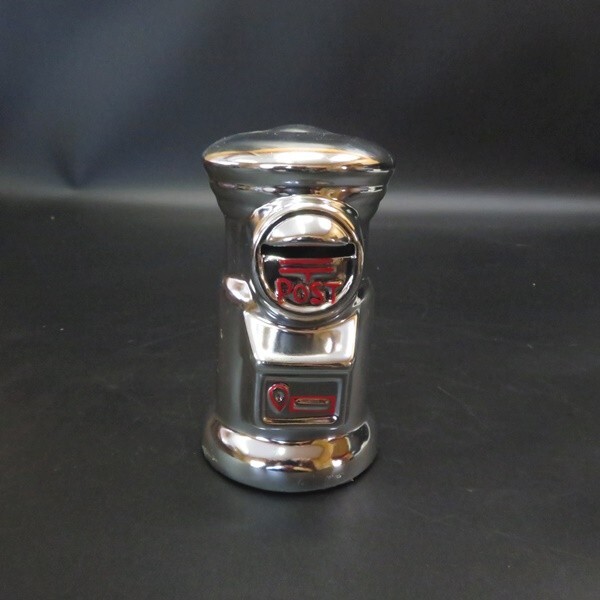 - U13 銀色ポスト貯金箱 約13㎝ 昭和レトロ 陶器製 ポスト型 ポスト 貯金箱 バンク 置物 オブジェ 貴重 当時物