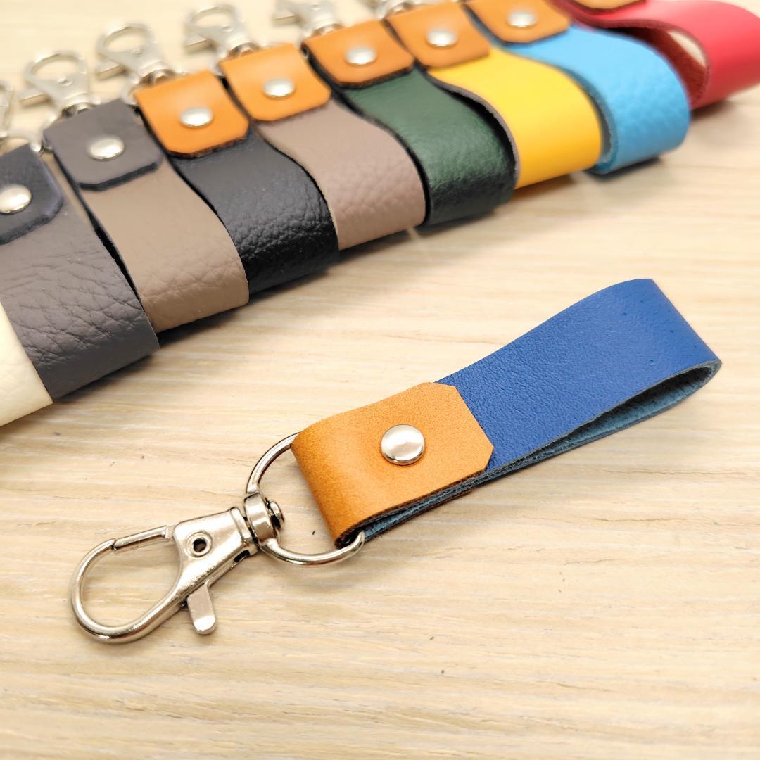 - キーホルダー バイカラー 【ブルー】 チャーム 小さい 革 ストラップ