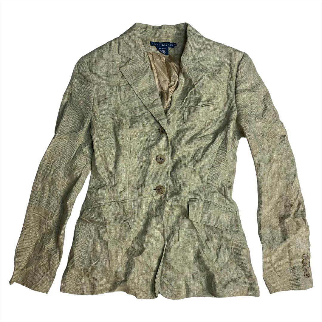 - Vintage Ralph Lauren ラルフローレン リネン テーラード ジャケット メンズ FREE グリーン 古着 4 ユーロ ブレザー ヴィンテージ