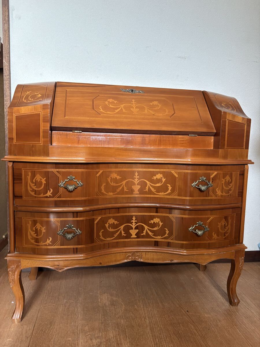 - イタリア製 アンティーク 猫脚 象嵌細工 クラシック チェスト 西洋 木製 ビューロー