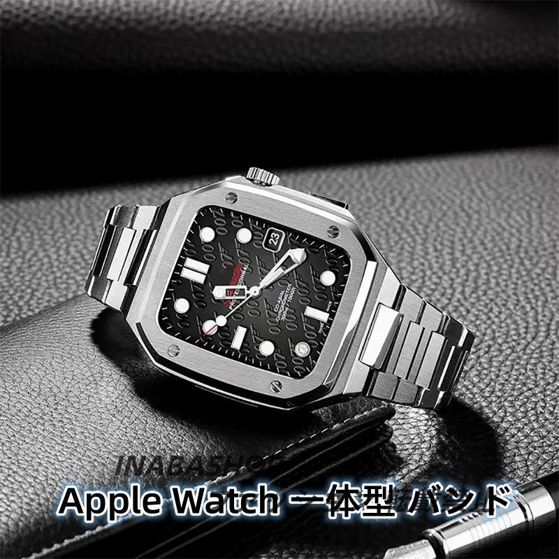 > Apple Watch 9バンド ステンレス一体型 Apple Watch 8 45MM Apple Watch 7 44MM 45MM 着せ替え 交換 高級感 男性