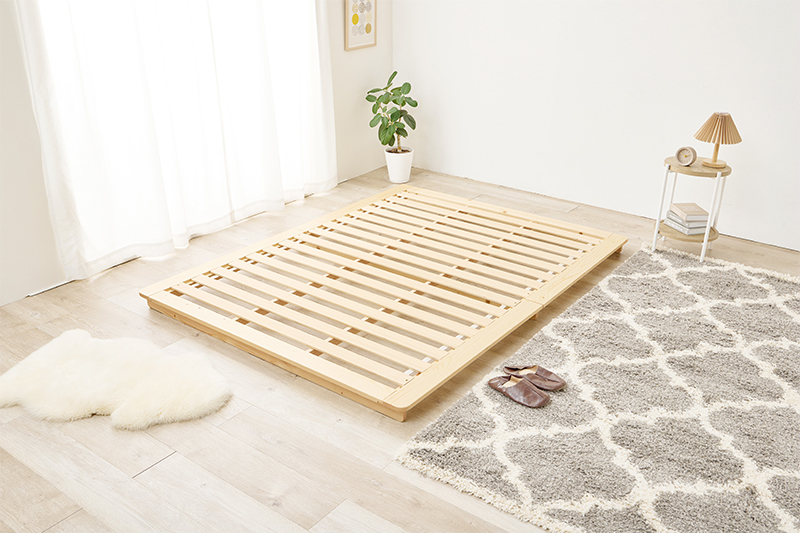 - 余裕のあるサイズ感のステージ型ローベッド ダブル~クィーン 幅160 ナチュラル色 マットレスなし