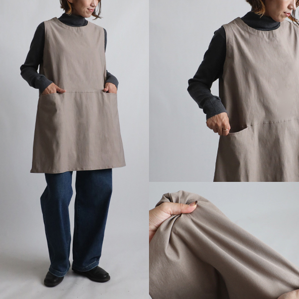 - 新作 88cm ぐーんと伸びる伸縮ストレッチ生地 大きなポケット付き チュニック ワンピース ジャンスカ エプロンF81