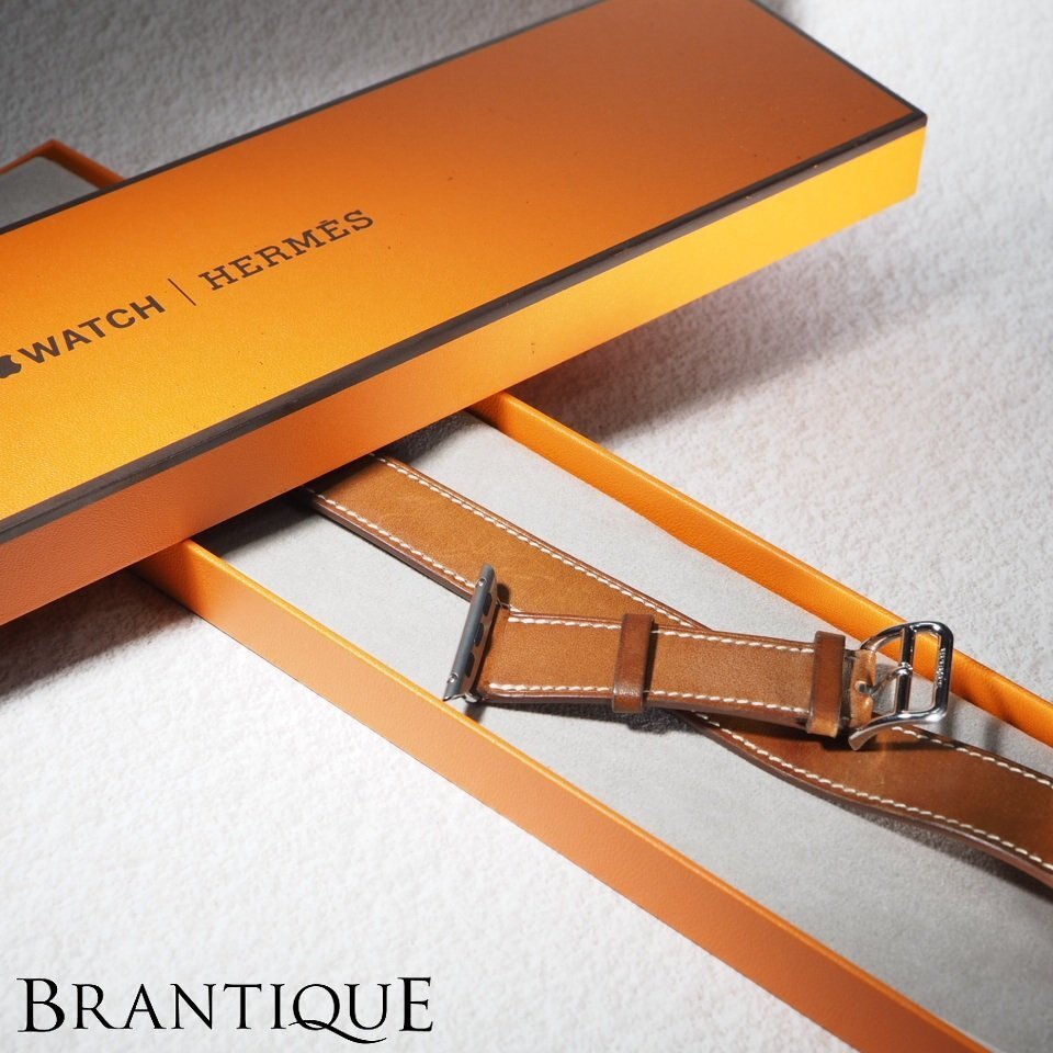 > ◆即決あり◆ HERMES エルメス アップルウォッチ用 革ベルト ドゥブルトゥール ブラウン ソフトケース 箱 「27517」