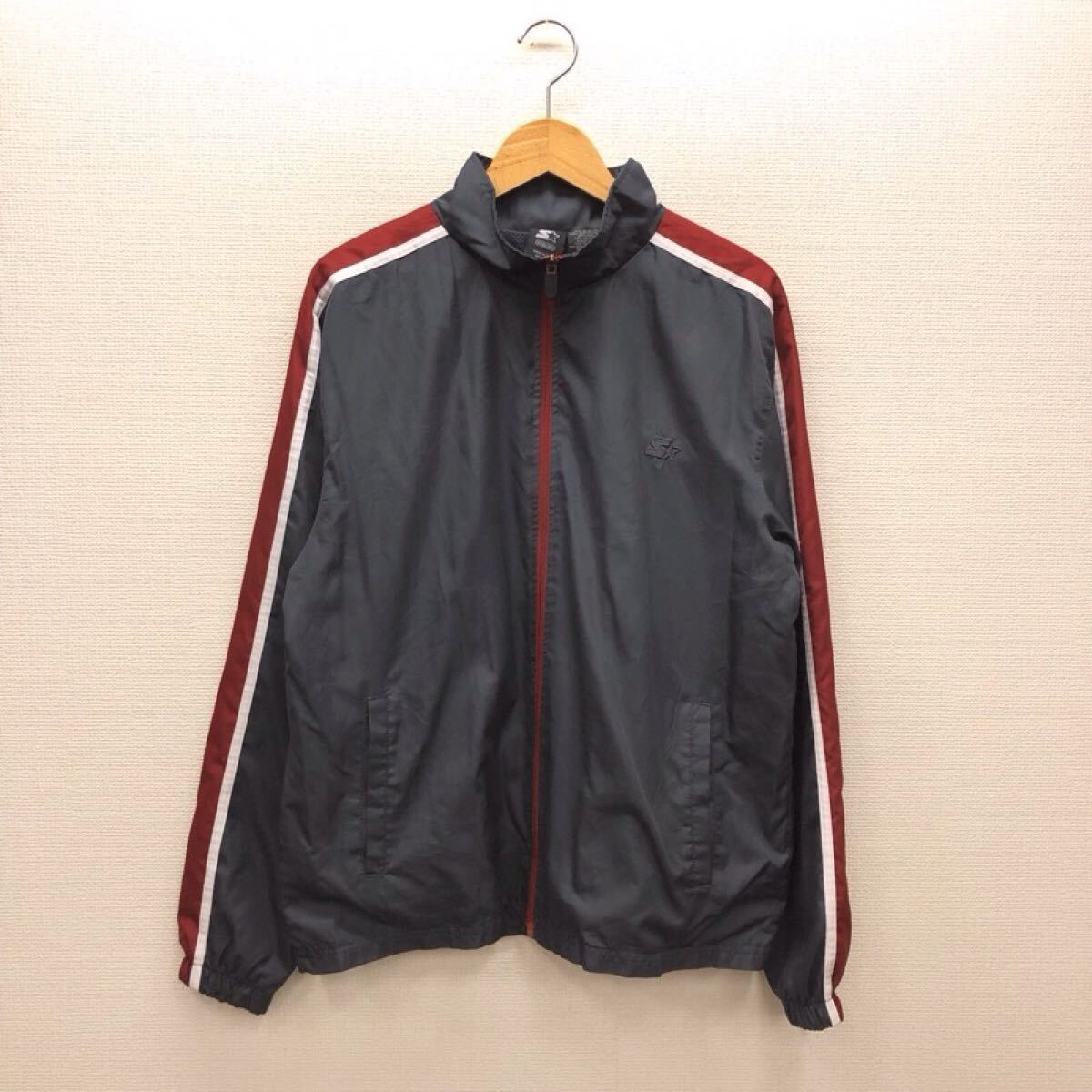 > 【GH588】STARTER Mサイズ ウィンドブレーカー チャコールグレー 袖口ゴム 刺繍ロゴ ブランド古着 スターター スポーツウェア 送料無料